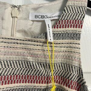 NWT BCBGeneration Crochet/Tweed Stripe Dress, Sand Combo (white/cream with red/navy/grey detailing), Size 6