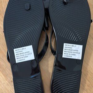 NWT BCBGeneration Lima Bow Jelly Sandal Black Shiny Flat Flip Flop Thong Size 8