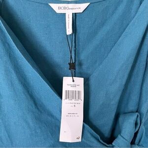 BCBGeneration women’s linen blend wrap sheath dress in electric blue. Size small.