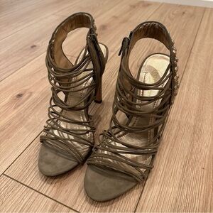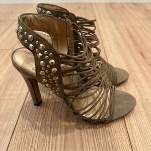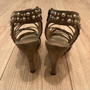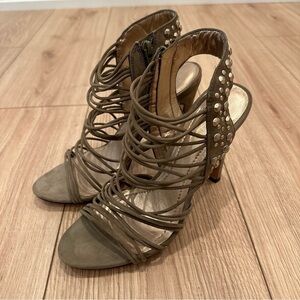 NWT BCBGeneration Pasha High Heel Sandals Dark Moss Kidskin Suede Studded