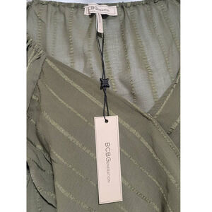 NWT BCBGeneration Sheer Olive Green Blouse Off Shoulder Womens Large