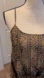 Lightweight semi sheer chiffon pleated tank with black lace panel. Allover black, tan, pink tribal print. Loose fit. Adjustable spaghetti straps.