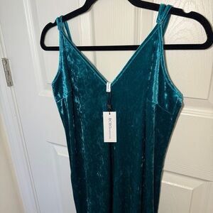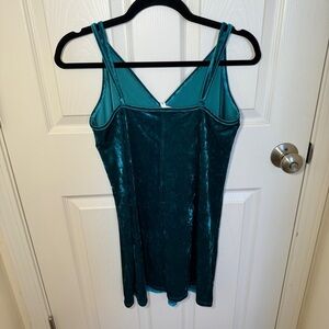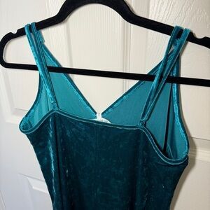 Beautiful teal mini dress in velvet material from the brand BCBGeneration. Adjustable spaghetti straps. Size Medium.