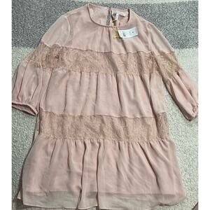 NWT BCBGeneration Women's Size Small 3/4 Sheer Sleeves Lace Mini Dress Rose Smoke