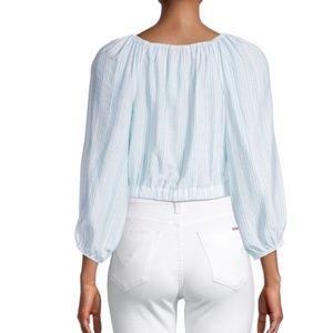 This cropped blouse from BCBGeneration features an effortless striped pattern and a polished wrap design.