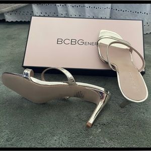 Never worn, still in the box! Faint snakeskin embossing. Classy, strapped sandals. Size 8M/38.5