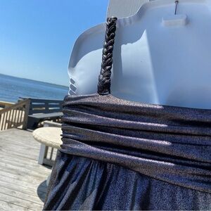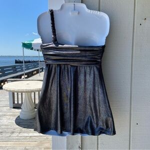 NWT BCBGeneration top is a one-strap bandeau number in metallic pewter. Sexy!