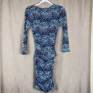 BCBGMAXAZRIA Blue & White Ruched Dress Size XS