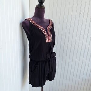 NWT BCX Womens Sleeveless Embroidered Romper Tie Back Black Rayon Sleveless Sz M