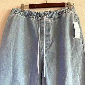 NWT BDG Urban Outfitters Denim High Waisted Joggers in Light Blue, Size Large.