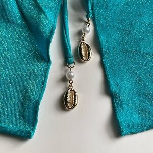 NWT BEACH BUNNY Keoni Crop Top Teal Turquoise w/ Gold Seashell Charms Size Small