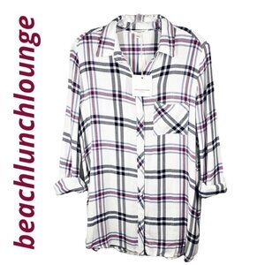 NWT BEACH LUNCH LOUNGE Bailey Long Sleeve Soft Plaid Button Up Shirt, Size Small