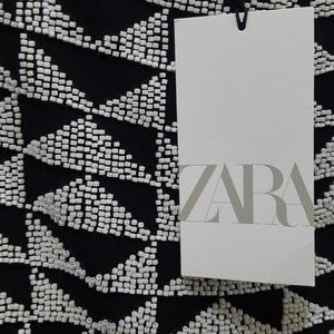 Mid rise mini skirt. Contrast beading detail. Interior lining. Side hidden in-seam zip closure.