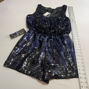 NWT BEBE Black Blue Sequin Embellished Romper Size 8 NEW