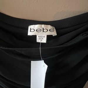 NWT BEBE Black Side Ruching Strapless Midi Dress