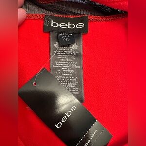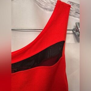 NWT BEBE Dress Bodycon One Shoulder Red Black Mesh Sheer Size Small Petite