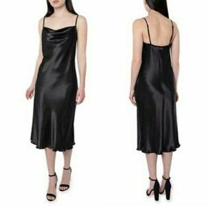 NWT BEBE SATIN MIDI SLIP BLACK DRESS