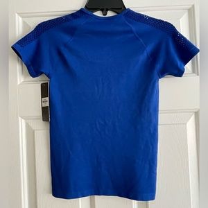 NWT BEBE Swarovski Crystals Blue SURF THE WEB Stretch Tee Mesh Peekaboo Top XS S