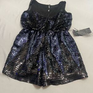 NWT BEBE Black Blue Sequin Embellished Romper Size 10 NEW