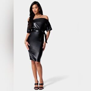 NWT BEBE Dolman Sleeve Vegan Leather Pencil Dress