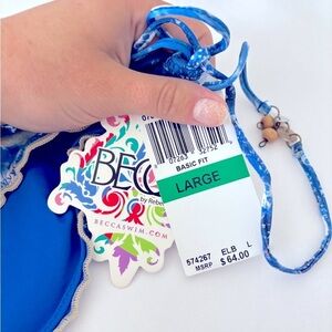 NWT BECCA Blue Patterned Bikini 2-piece Set Swim Tank Top + Bottom Size Large