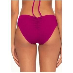 NWT BECCA Fine Line Ruched-Back Hipster Bikini Bottom Pomegranate Womens Size XS
