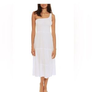NWT BECCA Smocked Ponza One-Shoulder Flowy White Coverup Midi Dress