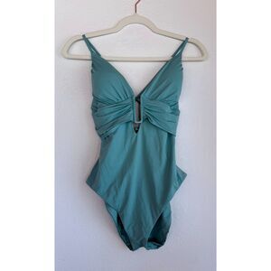 NWT BECCA by Rebecca Virtue Color Code Bristol Plunge One-Piece in Mineral Blue