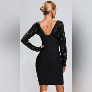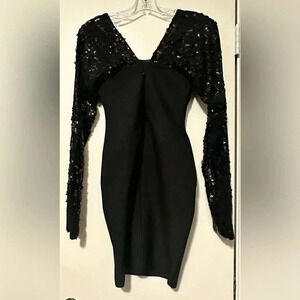 NWT BELLA BARNETT Sequin Mini Bandage Dress black size S