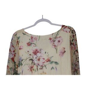 NWT BELLAMBRA Silk Blend Tiered Hem Mini Dress Yellow Floral Size Medium Italy