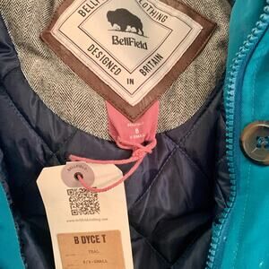 NWT BELLFIELD TEAL HOODED PARKA JACKET FUR TRIM. OUTSTANDING WARM QUILTED JACKET FROM BRITISH DESIGNER BELLFIELD IN A BEAUTIFUL SHADE OF TEAL. DRAWSTRING ALLOWS YOU TO DEFINE WAIST OR LEAVE IT STRAIGHT. FAUX FUR TRIMMED HOOD.