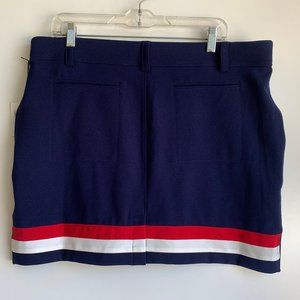 BELYN KEY Color= Ink Navy blue pull-on golf skort with attached shorts Front and back pockets. Belt loops Red and white striped hem in the back Size XL Waist laying flat across 19" Length 17" New with Tags. Retail price $132.00 Quick shipping Bundle your likes for savings