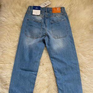NWT BERSHKA DENIM Women 90s Straight Baggy Fit Jeans in Light Blue Waist 29"