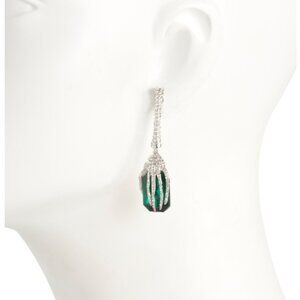 BETSEY JOHNSON Green Crystal Skeleton Hand Drop Earrings