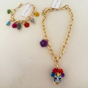 NWT BETSEY JOHNSON HALLOWEEN SKULL NECKLACE & BRACELET SET