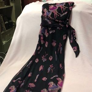 NWT BETSEY JOHNSON Strapless Black Print Evening Dress
