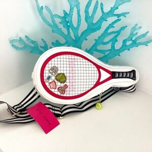 large super cute Betsey Johnson XOVolley tennis racquet crossbody / tennis racket