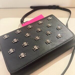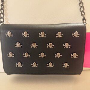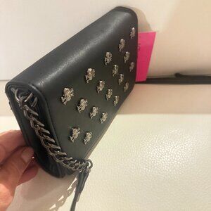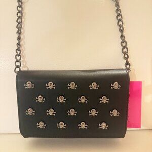 NWT BETSEY JOHNSON XOSYBIL CROSSBODY SHOULDER BAG BLACK W SKULL STUDS