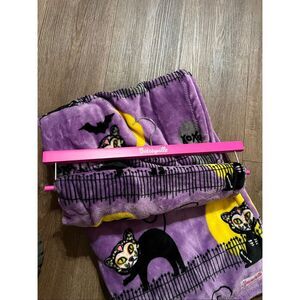 NWT BETSEYVILLE BETSEY JOHNSON Halloween Throw Blanket Black Cat Purple w/Hanger