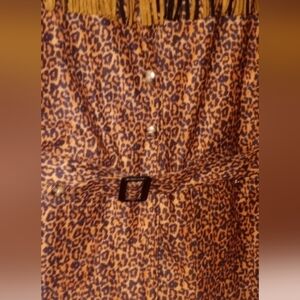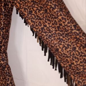 Beulah style Leopard print & Fringed sleeves and wrap around chest & back Button down belted jacket with pockets NWT