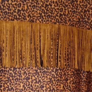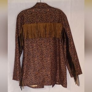 NWT BEULAH style Leopard print & Fringe Button down belted jacket with pockets