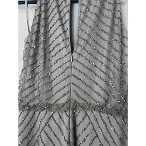 NWT BHLDN ADRIANNA PAPELL DRESS MADIGAN BEADED LEAD SILVER ART DECO BLOUSON MAXI