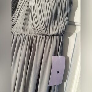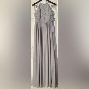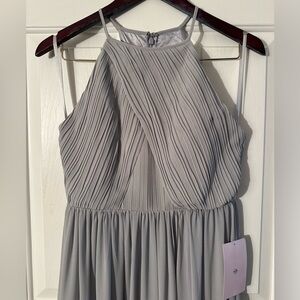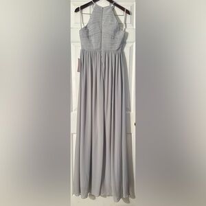 NWT BHLDN Anthropologie 14 Madrie Maxi Dress Fog Grey Bridesmaid Halter Chiffon