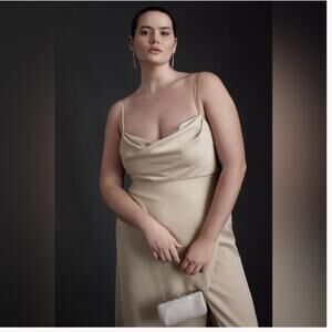 NWT BHLDN Anthropologie Champagne Remy Cowl Neck Faux Wrap Satin Gown 18W