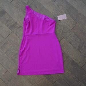 NWT BHLDN Emilia One-Shoulder Stretch Crepe Mini Dress Size Large Pink