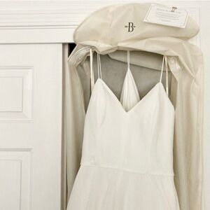 NWT BHLDN Jenny Yoo Piper Fit Flare Ribbed Wedding Dress with Train L375