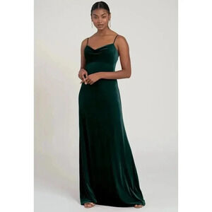 NWT BHLDN Jenny Yoo Sammi Velvet Maxi Slip Dress Emerald Green Size 4