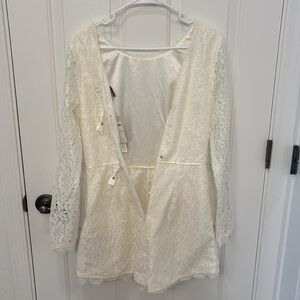 NWT BHLDN Mock-Neck Long-Sleeve Bow-Back Lace Romper