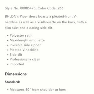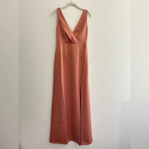 NWT BHLDN Piper V Neck Satin Gown Maxi Side Slit Sedona Size 4