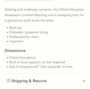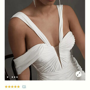 New bridal gown by Rish sold by BHLDN. Ships in garment bag. Mesh panel at bust. Ruching to accentuate the female form. Stretchy material.